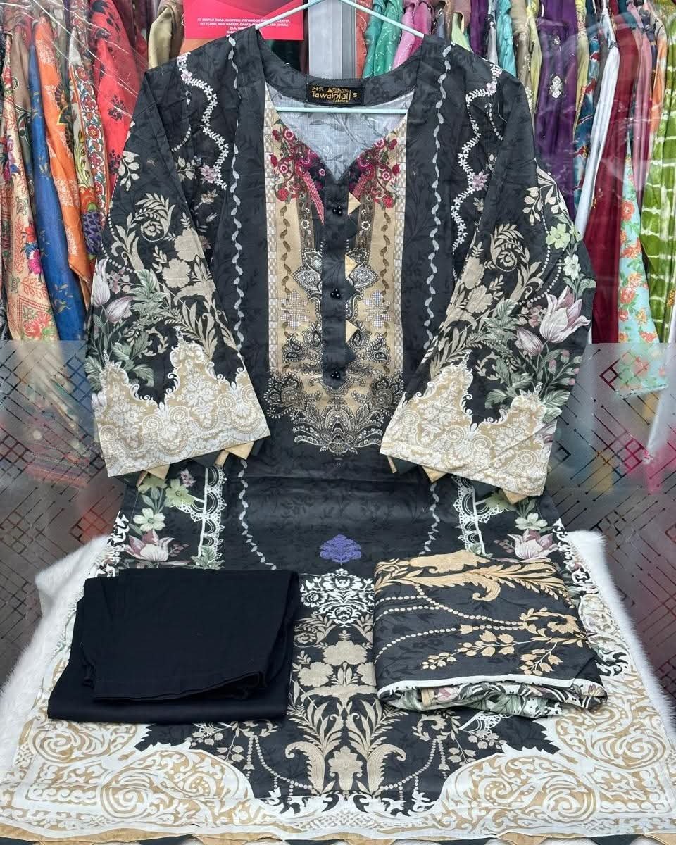 ADS-25010-স্টিচড জমজম সুইচ লন কটন থ্রি পিস